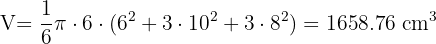 - Calcular el área y el volumen de una zona esférica cuyas circunferencias tienen de radio 10 y 8cm, y la distancia entre ellas es de 6 cm.