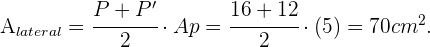 Primero debemos encontrar las áreas de las bases y los respectivos perímetros. El área de la base mayor es