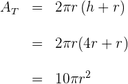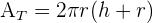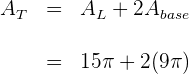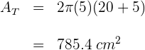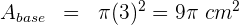 1El área total de un cilindro es igual a la suma de su área lateral con el doble del área de su base. Como conocemos el área lateral, solamente nos falta el área de la base.