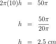 1Primero utilizamos el hecho que la altura es igual a la longitud de la circunferencia de la base para encontrar el valor del radio