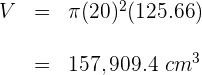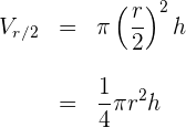 2Calculamos el volumen para el cilindro con el radio reducido a la mitad