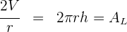 1A partir de la fórmula de área lateral de un cilindro en término de su volumen y radio, se obtiene