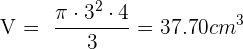 Calcula el área lateral, total y el volumen de un cono cuya altura mide 4 cm y el radio de la base es de 3 cm.