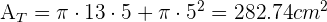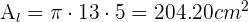 Calcula el área lateral, total y el volumen de un cono cuya generatriz mide 13 cm y el radio de la base es de 5 cm.