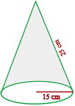 Para una fiesta, Luís ha hecho 10 gorros de forma cónica con cartón. ¿Cuánto cartón habrá utilizado si las dimensiones del gorro son 15 cm de radio y 25 cm de generatriz?