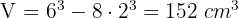 El volumen de la figura será el volumen del cubo completo cuya arista medirá 3 · 2 = 6 cm, menos el volumen de los huecos.