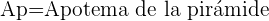 Apotema: La apotema de la pirámide es la altura de cualquiera de sus caras laterales.