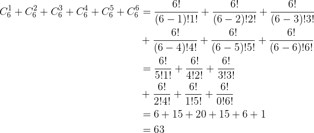 Como en este problema no se indica la cantidad de personas en el equipo, debemos considerar los diferentes equipos integrados por sólo una persona, dos personas, tres personas, cuadro personas, cinco personas y seis personas, cuyos distintas sumas están dadas por ,