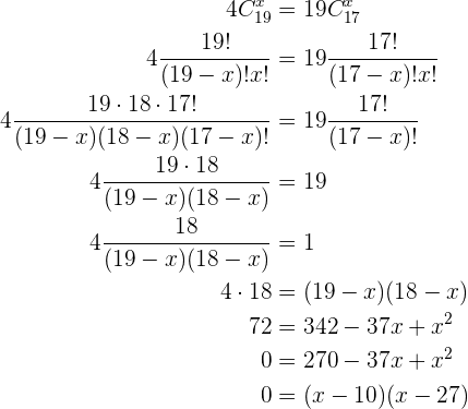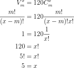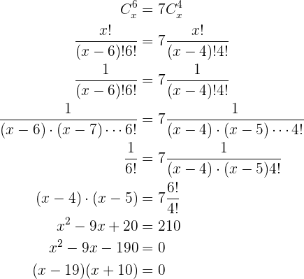 Ecuaciones de combinatorias. Resolver las siguientes ecuaciones combinatorias: