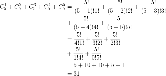 , respectivamente. Esto es, debemos sumar las distintas maneras de formar grupos de una persona, grupos de dos personas, de tres personas y así sucesivamente.