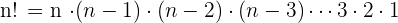 . Es decir que hay que multiplicar todos los números naturales que hay entre ese número y el