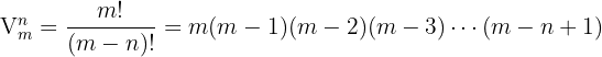 Si no se admiten elementos repetidos, entonces el número de n-tuplas en que ninguno de los elementos se repiten se llama número de variaciones sin repetición y las obtenemos mediante la siguiente formula