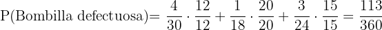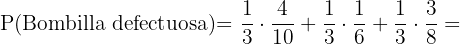 La probabilidad de elegir una bombilla fundida es la suma de probabilidades de elegir una bombilla fundida de cada caja y la podemos calcular de la siguiente manera:
