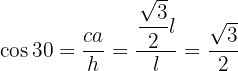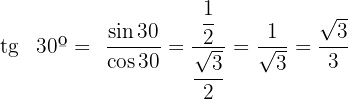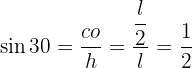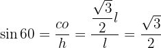 Ahora usamos las definiciones de las razones trigonométricas para los ángulos de 30º y 60º. Donde co = cateto opuesto, ca = cateto adyacente y h = hipotenusa.