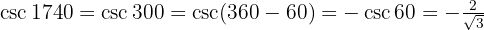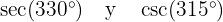 Seguimos teniendo un ángulo mayor que 90º, de hecho es más grande que 360º, por lo tanto comenzamos por dividir el ángulo entre 360, para encontrar su equivalente: y tenemos un residuo de , el cual es el equivalente, por lo tanto calcularemos las funciones trigonométricas para el ángulo .