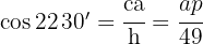 Comenzamos por aplicar directamente la ley de cosenos, es decir: cm