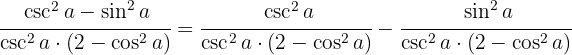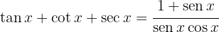 a Comenzaremos aplicando directamente las correspondientes identidades trigonométricas y posteriormente cambiamos la definición de secante y cosecante, Para finalmente hacer la división de fracciones y encontrar la definición de tangente.