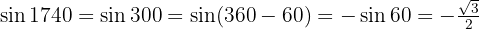 Recordemos que dependiendo de la función, los ángulos negativos pueden o no, hacer a la función negativa. Además que cuando tenemos ángulos mayores de 90º buscamos expresar el ángulo de la siguiente forma dónde si es par entonces es igual a la función de , es decir, , donde representa a las funciones trigonométricas. También es importante recordar que las funciones tienen diferentes signos dependiendo del cuadrante en el que se encuentren.