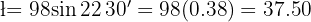 El valor de representa la hipotenusa del triángulo rectángulo de la imagen. Tenemos información del ángulo y del cateto opuesto al ángulo, por lo tanto, como queremos conocer la hipotenusa, utilizamos la función seno: