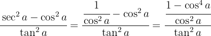 b Comenzamos por usar la definición de secante, hacer la resta y división de fracciones, Convertimos la diferencia de cuadrados en binomios conjugados y cambiamos la definición de tangente. Se cancelan los cosenos y usamos la identidad