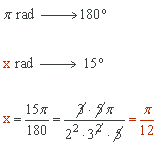 ¿Cuánto le falta al complemento del suplemento de 165,315° para alcanzar el suplemento del complemento de π/12 rad?