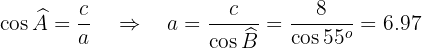 Cálculo el lado bc aplicando la ley de cosenos b=5cm c=6cm a=60°