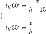 2Eva observa desde la ventana de su casa un accidente con un ángulo de 60º. Como es muy curiosa y desde allí no lo ve muy bien, sube a la azotea del edificio que está 15 metros más arriba. Coge unos prismáticos y ahora ve el accidente con un ángulo de 35º. ¿Qué altura tiene el edificio y a qué distancia de casa de Eva ocurrió el accidente?