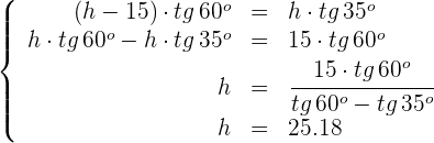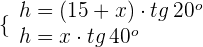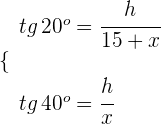 1Un árbol y una persona se encuentran en orillas opuestas de un río. Esta persona observa el punto más alto del árbol bajo un ángulo de 40º. Si retrocede 15 m y vuelve a medir el ángulo, obtiene 20º. ¿Cuál es la altura del árbol y la anchura del río?