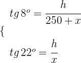 3Un barco se encuentra en cierto punto del mar. La situación de los viajeros es dramática ya que en este momento les queda combustible para recorrer 400 metros. El capitán del barco observa en este punto la luz de un faro con un ángulo de elevación de 8º. Después de recorrer 250 metros en dirección hacia el faro, el ángulo que forma la luz con la horizontal del mar es ahora de 22º. ¿Qué altura tiene el faro? ¿Llegará el barco a tierra?