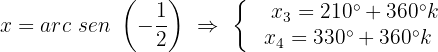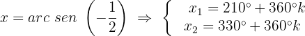 , trazamos una linea desde esa altura hasta el origen y observamos el punto de intersección con la circunferencia, buscamos el valor de ese punto en nuestro círculo unitario y obtenemos el valor de la ecuación: