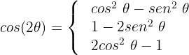Usaremos la siguiente identidad trigonométrica para ángulos dobles: