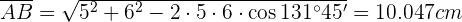- Finalmente, como conocemos dos lados del triángulo y el ángulo formado por estos dos lados, podemos calcular la longitud del segmento