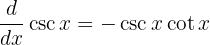 Tenemos que la derivada de cosecante es