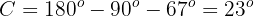 . Ahora que tenemos dos de los tres ángulo podemos obtener el faltante de forma directa