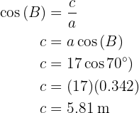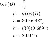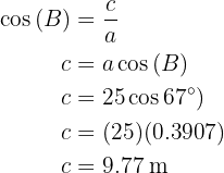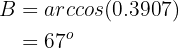 primero calcularemos el coseno del ángulo utilizando el cateto y la hipotenusa que conocemos para posteriormente aplicar la función inversa arcocoseno.