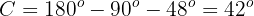 Dado que conocemos ya dos de los tres ángulo, podemos calcular el faltante,