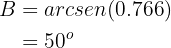Aplicando arcoseno tenemos que el ángulo vale . Ahora, una vez que tenemos dos ángulo, podemos calcular de manera inmediata el último;
