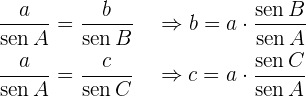 - Luego utilizando el teorema del seno, tenemos las siguientes relaciones: