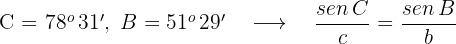 2 Aplicamos el teorema del seno para encontrar uno de los dos ángulos faltantes