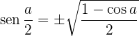 Conociendo las funciones trigonométricas para el ángulo , podemos obtener las funciones trigonométricas para el ángulo mitad