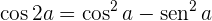 Conociendo las funciones trigonométricas para el ángulo , podemos obtener las funciones trigonométricas para el ángulo doble