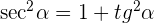 La siguiente ecuación es conocida como una identidad Pitagórica que relaciona a la tangente y la secante.