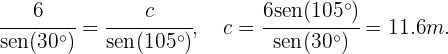 Para hallar el valor de los lados restantes utilizaremos el Teorema del seno, pues ya sabemos el valor del ángulo