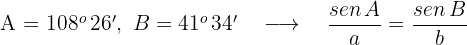 2 Para calcular el ángulo aplicamos el teorema de los senos, considerando los recíprocos