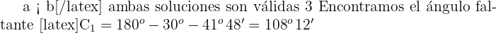 2 Aplicamos el teorema del seno para encontrar uno de los dos ángulos faltantes