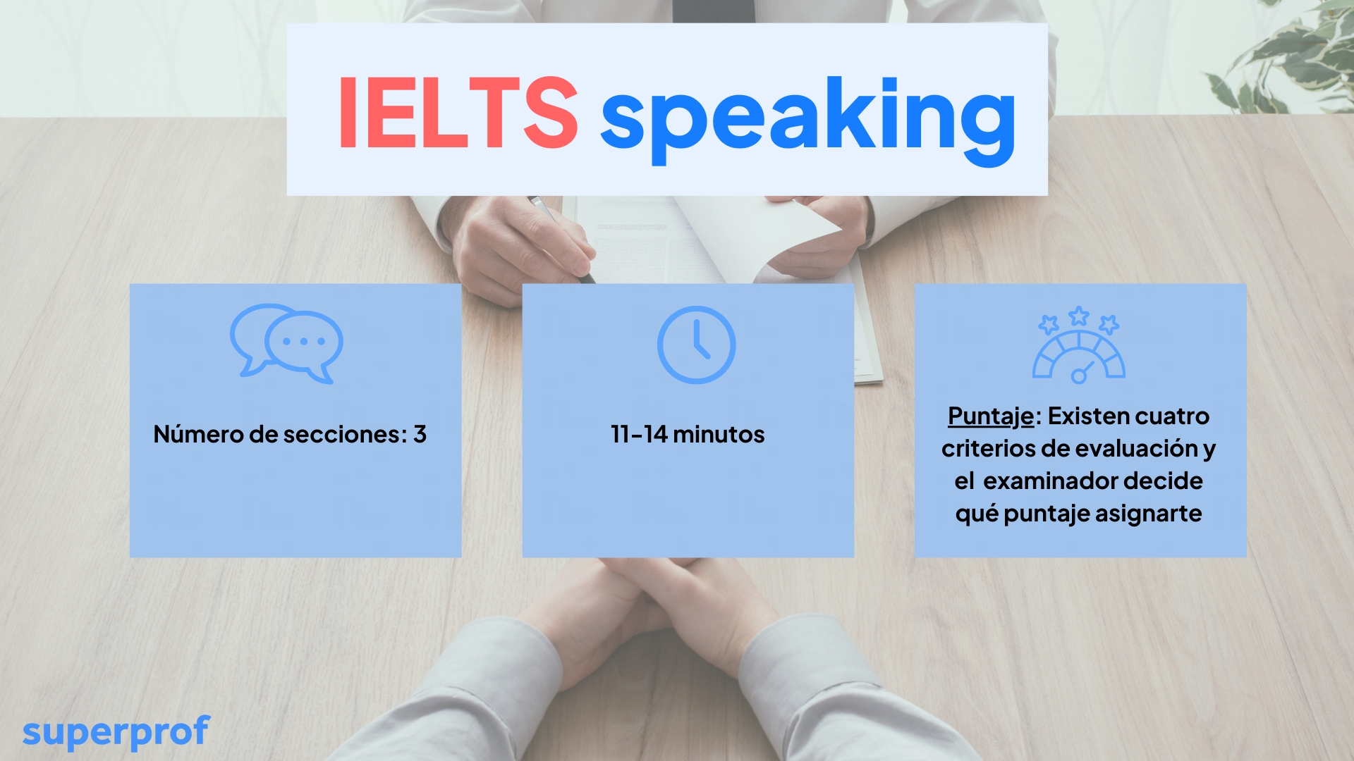 El examen IELTS Speaking se divide en tres partes y tiene una duración de 11 a 14 minutos.
